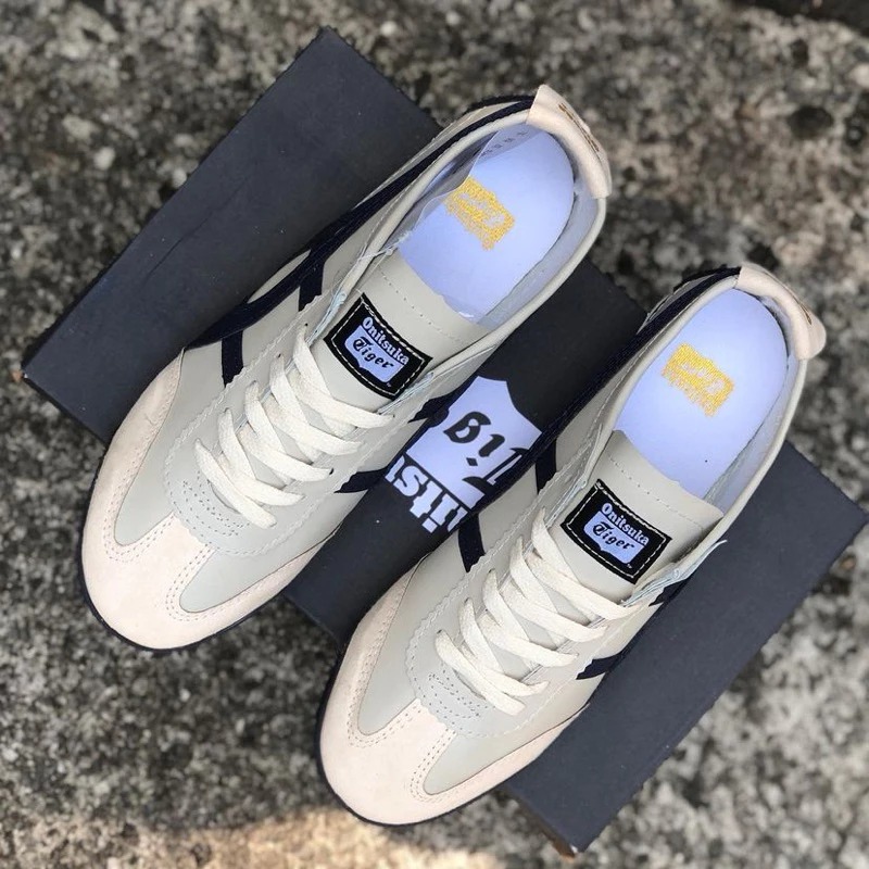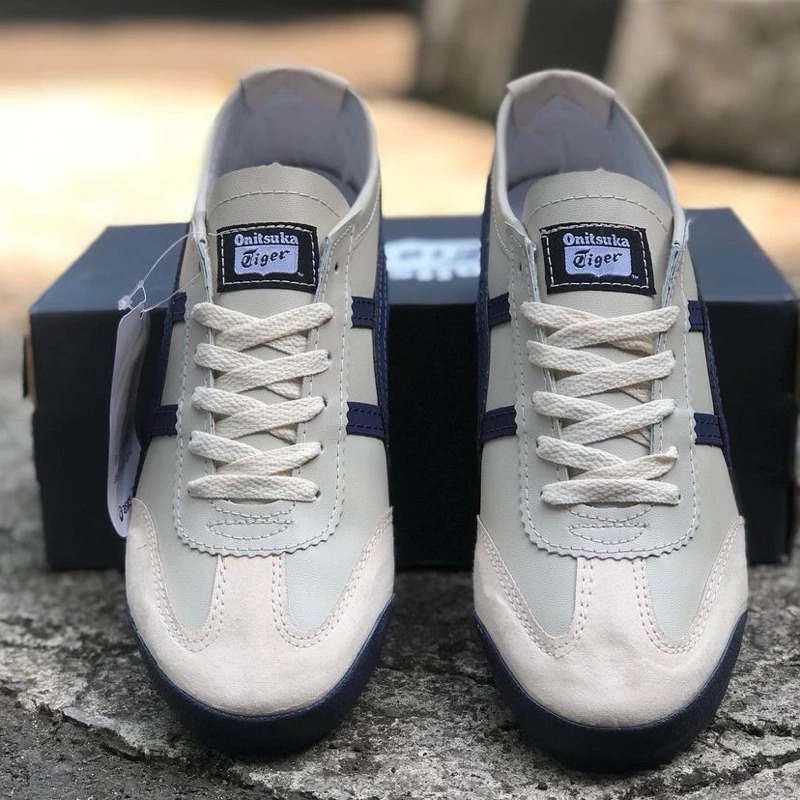 SEPATU PRIA/WANITA ONITSUKA TALI CREAM NAVY PREMIUM - FREE ONGKIR