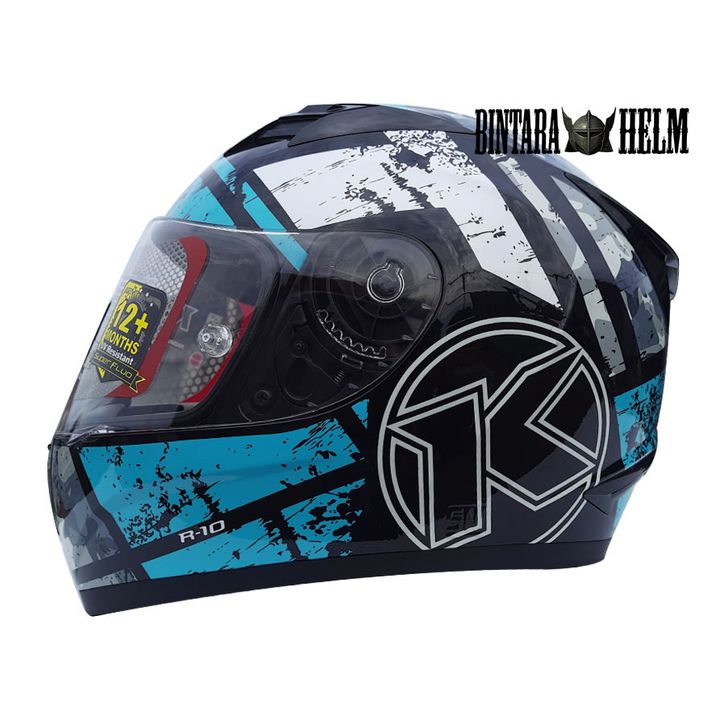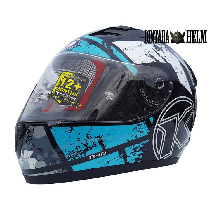 HELM KYT R10 MOTIF #3 AQUA BLUE BLACK ORIGINAL KACA FLAT CLEAR | HELM MOTOR R 10 TERBARU KYT HELMET FULL FACE