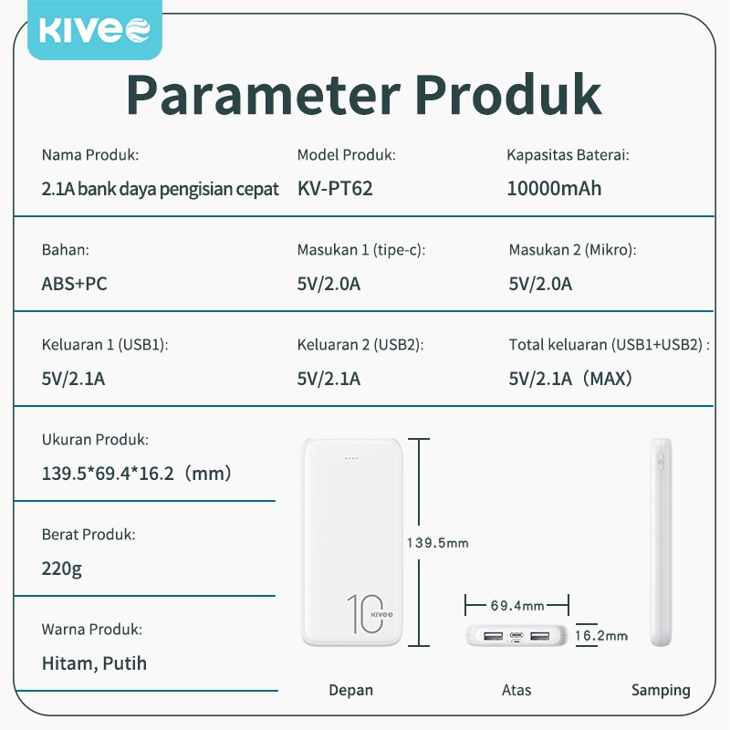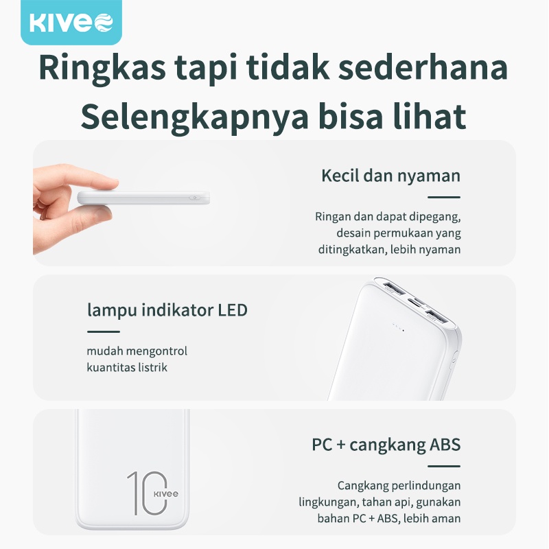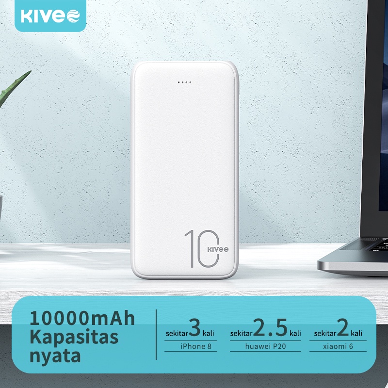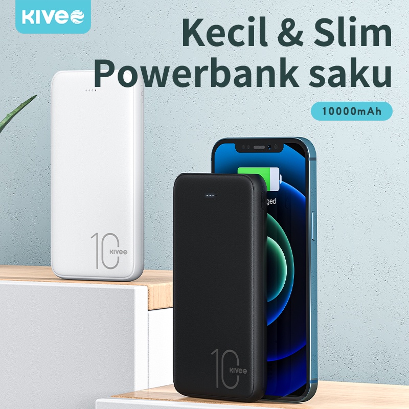 KIVEE powerbank mini 10000 mah fast charging dual USB black dan white