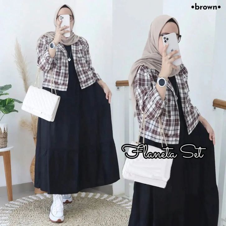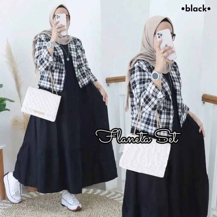 FLANETA SETELAN PAKAIAN WANITA MUSLIM KEKINIAN 2023 - DRESS BAHAN RAYON DAN OUTER BAHAN FLANNEL PREMIUM