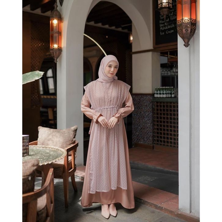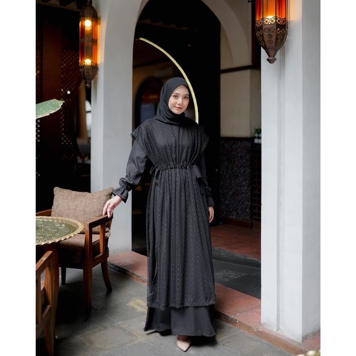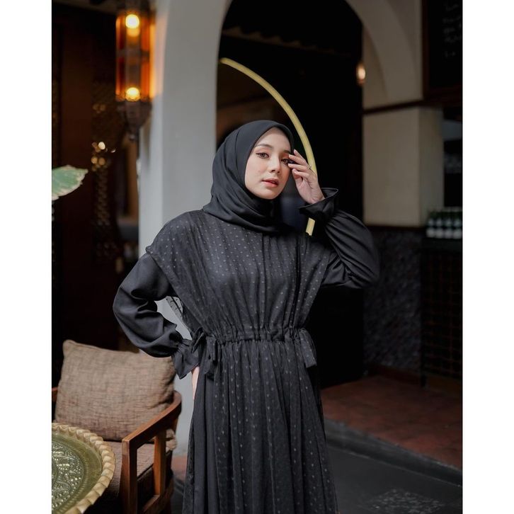 ONE SET WANITA TERBARU - BELVA SETELAN GAMIS WANITA KEKINIAN MATT MOSCREPE MIX TILE DOT - FASHION MUSLIM TERBARU DAN MU