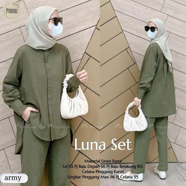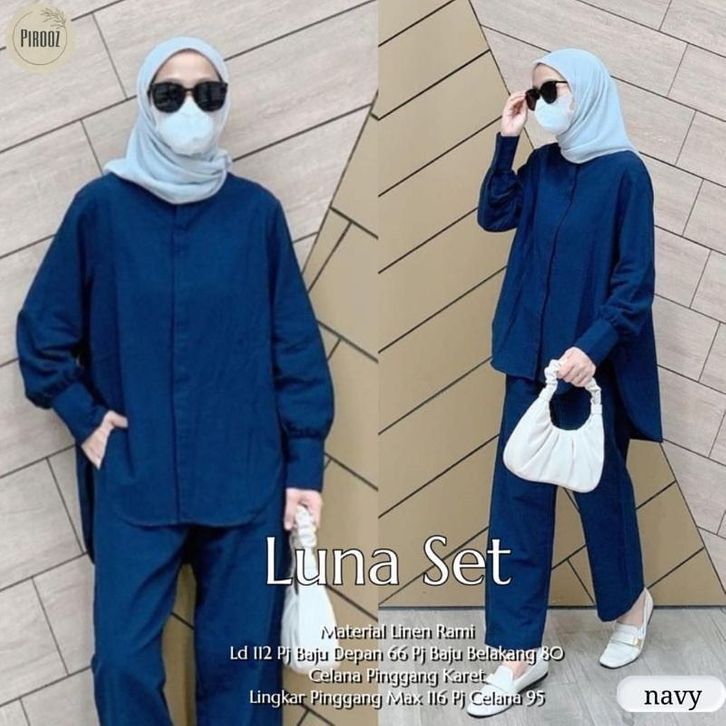 ONE SET WANITA TERBARU - LUNA SETELAN CEWEK ATASAN DAN CELANA MATT KATUN RAMI - FASHION WANITA KEKINIAN 2023