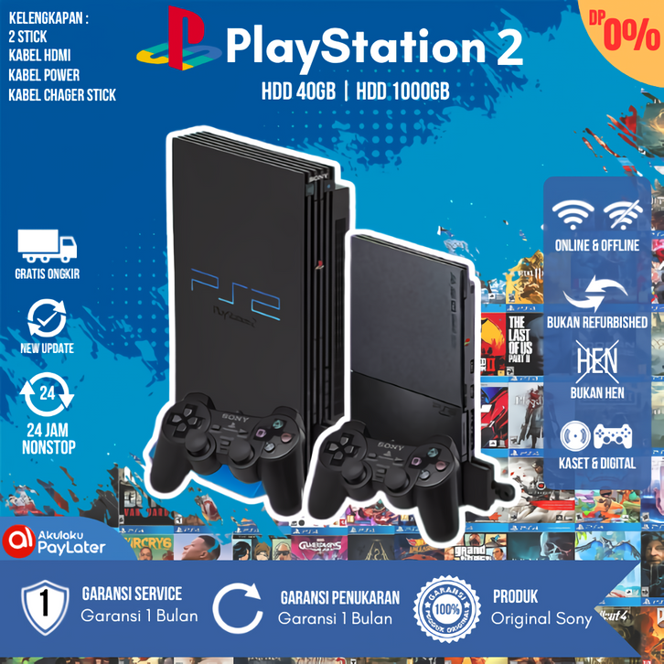 PS2 Sony Playstation 2 Fat Hardisk 160GB + 2 Stik + Full Game Original