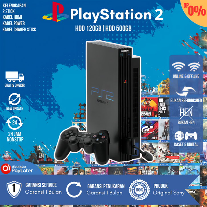 PS2 SONY PLAYSTATION 2 FAT HARDISK FULL GAME 120GB - 500GB 2STIK ORIGINAL