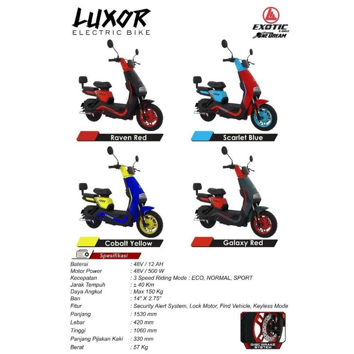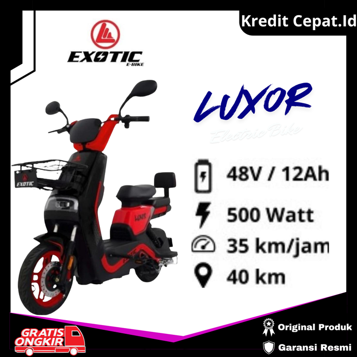 Sepeda Listrik EXOTIC Luxor Merah Speed 35 km/jam, Jarak Tempuh 40 Km Garansi Resmi - Kredit Cepat.Id