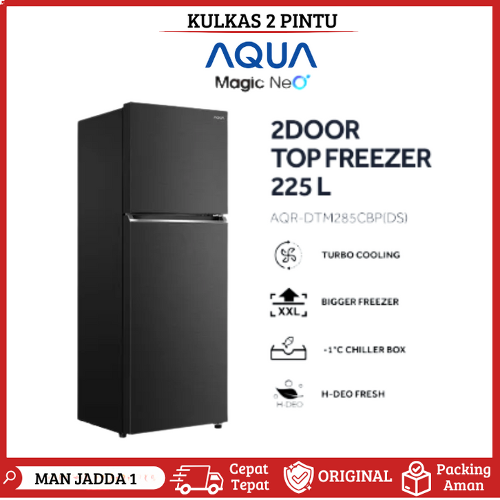 KULKAS AQUA 2 PINTU 225 L AQR-DTM285CBP(DS) TURBO COOLING TERBARU KAPASITAS BESAR
