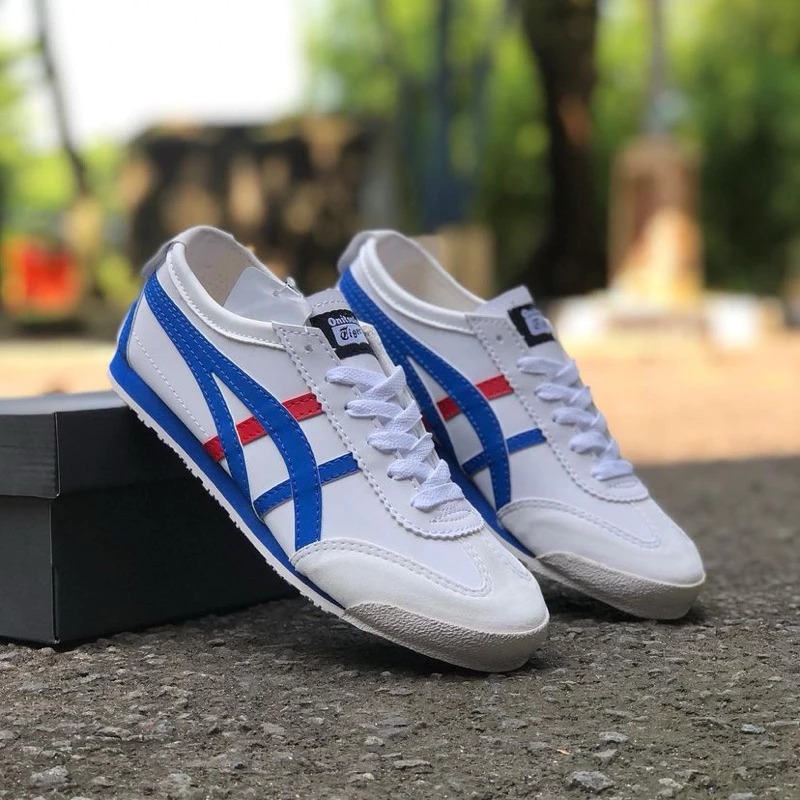 SEPATU PRIA/WANITA ONITSUKA TALI WHITE BLUE PREMIUM - FREE ONGKIR