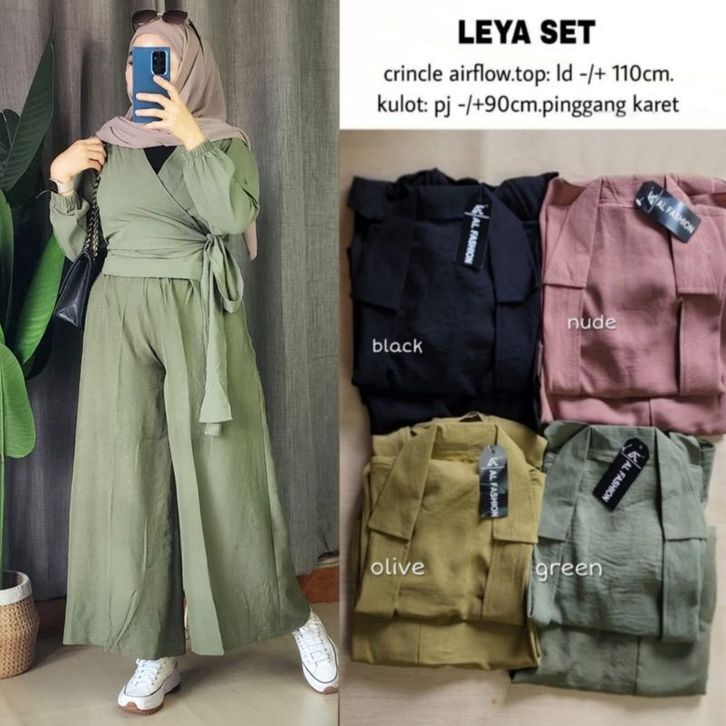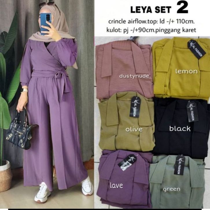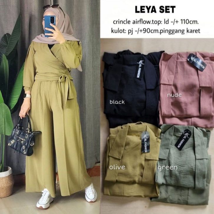Baju setelan Wanita Kekinian One Set Muslim Leya Terbaru