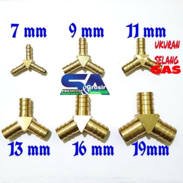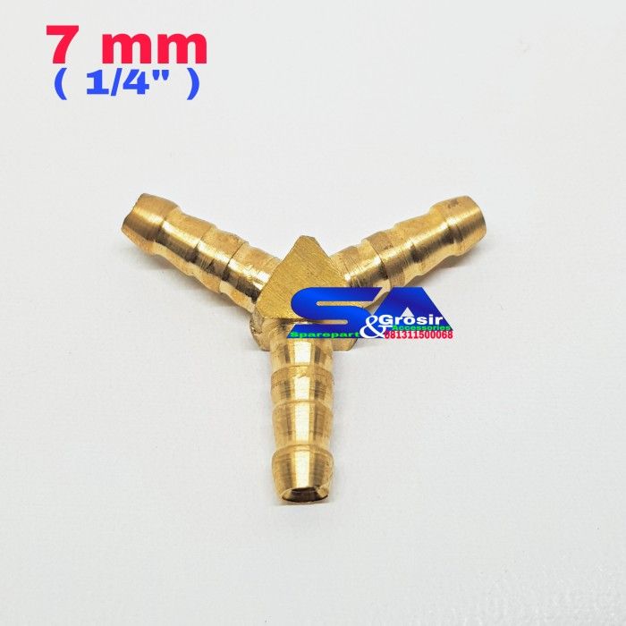 7 mm Nepel Cabang 3-Y-T KUNINGAN Sambungan Selang Gas/Air/Kompresor