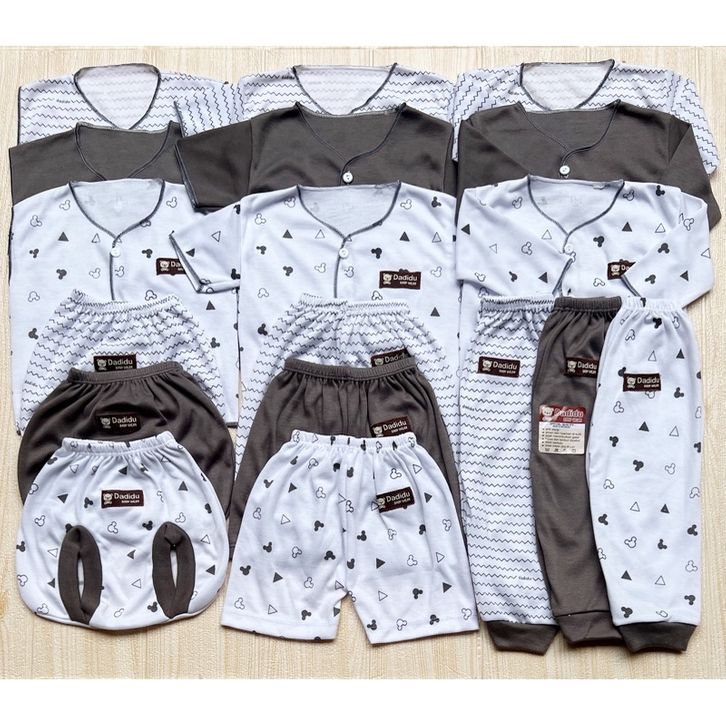 DADIDU GREY ABU TUA SERIES - 18 PCS Paket Baju Bayi Celana Bayi Setelan Bayi Baju Bayi Newborn Bayi Baru Lahir Lengkap