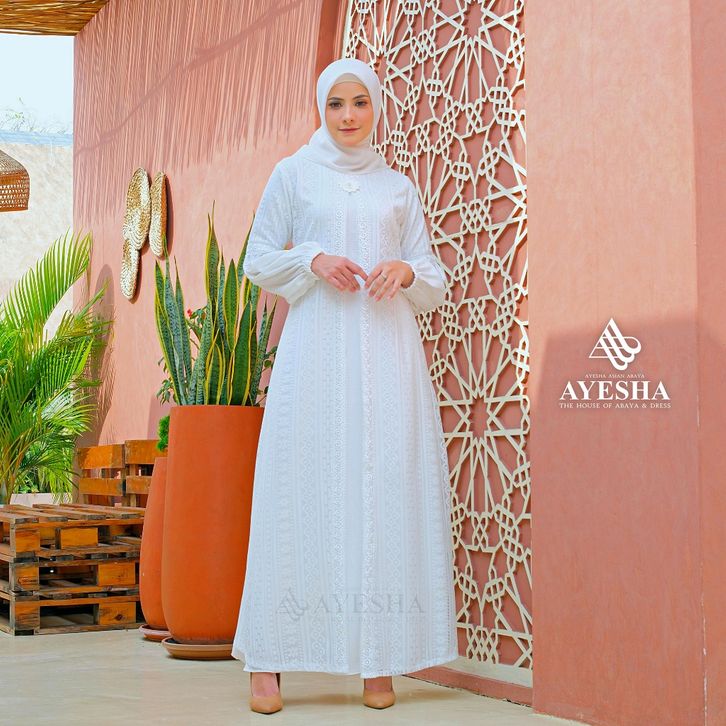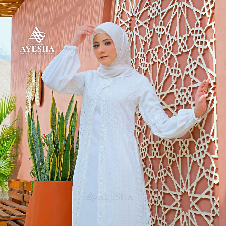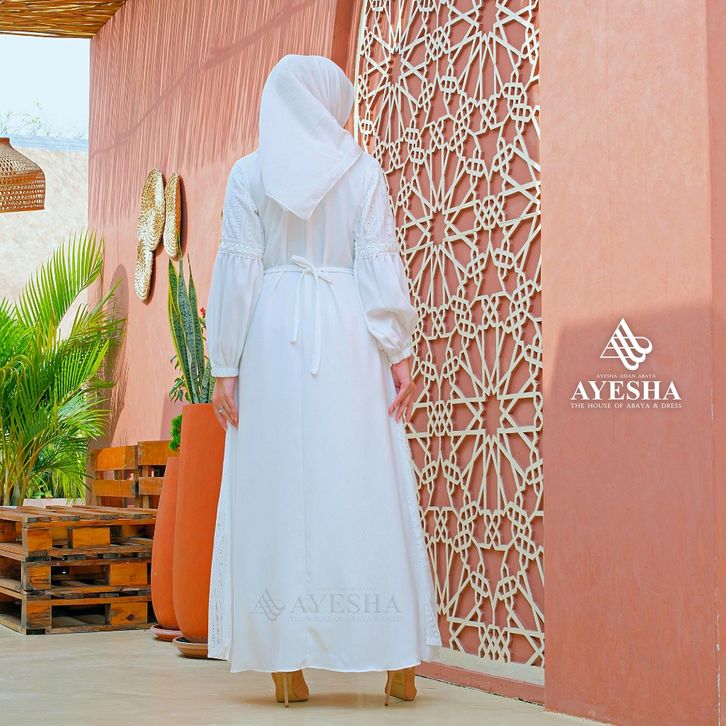 Gamis Putih Wanita AYESHA Gamis Putih Brukat Wanita Abaya Turkey Terbaru