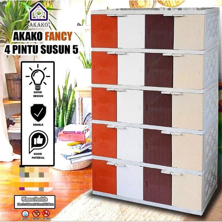 Lemari Pakaian Plastik AKAKO JUMBO Akako Fancy 4 Pintu Buffet Serbaguna Motif Rotan - lemari plastik berkualitas 2024