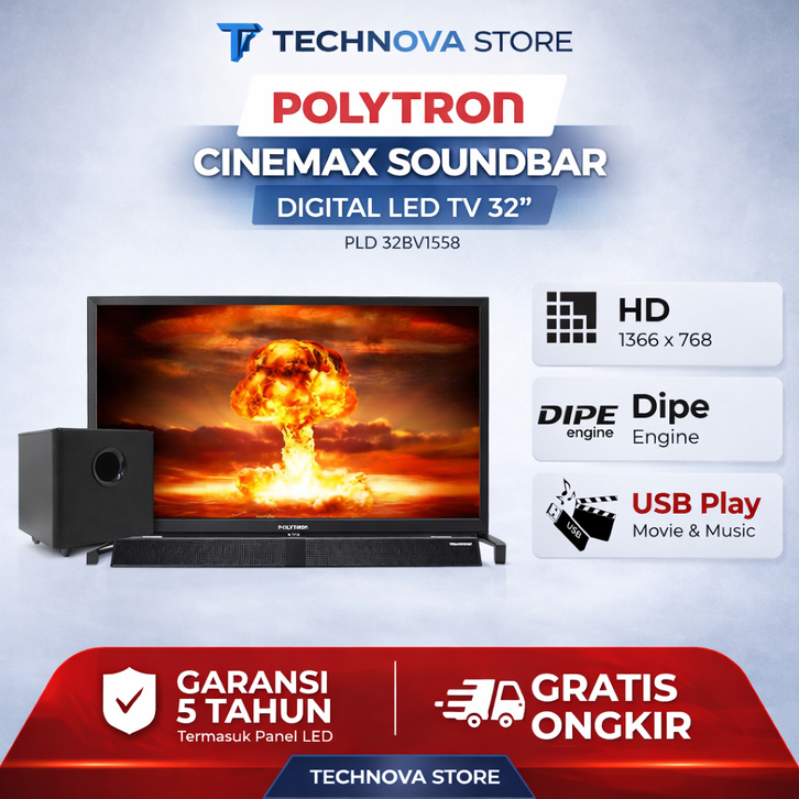 [Mall] Tv Polytron 32 Inch Digital Android Televisi Politron Cinemax Soundbar LED PLD 32BV1558 Tanpa Dp Official Store