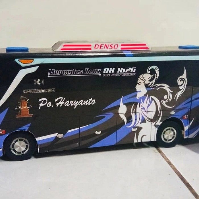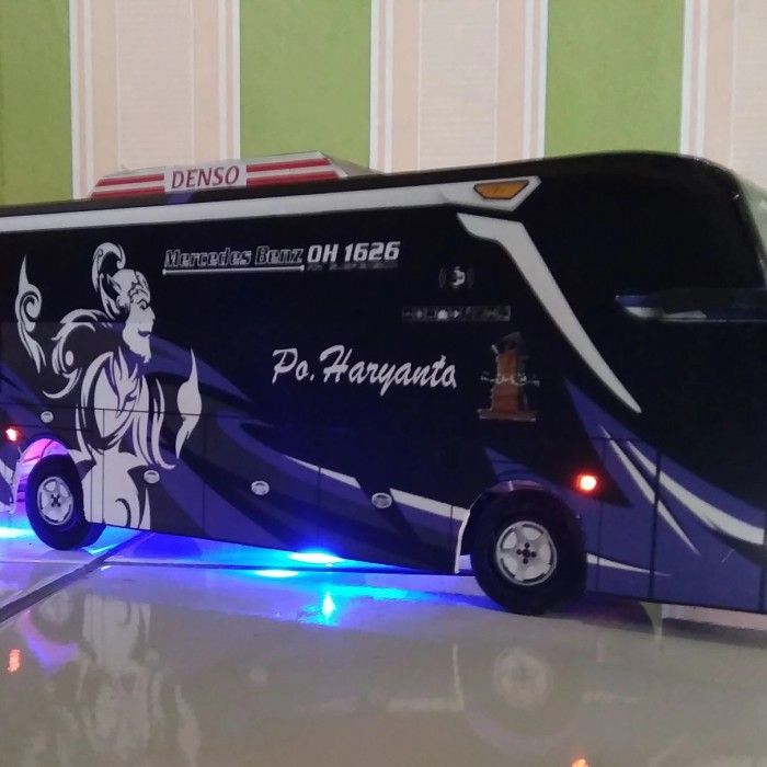 Mainan unik Miniatur Bus Haryanto Bima ungu remot full lampu - Tanpa Lampu, Panjang 38 cm
