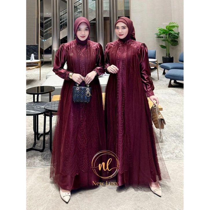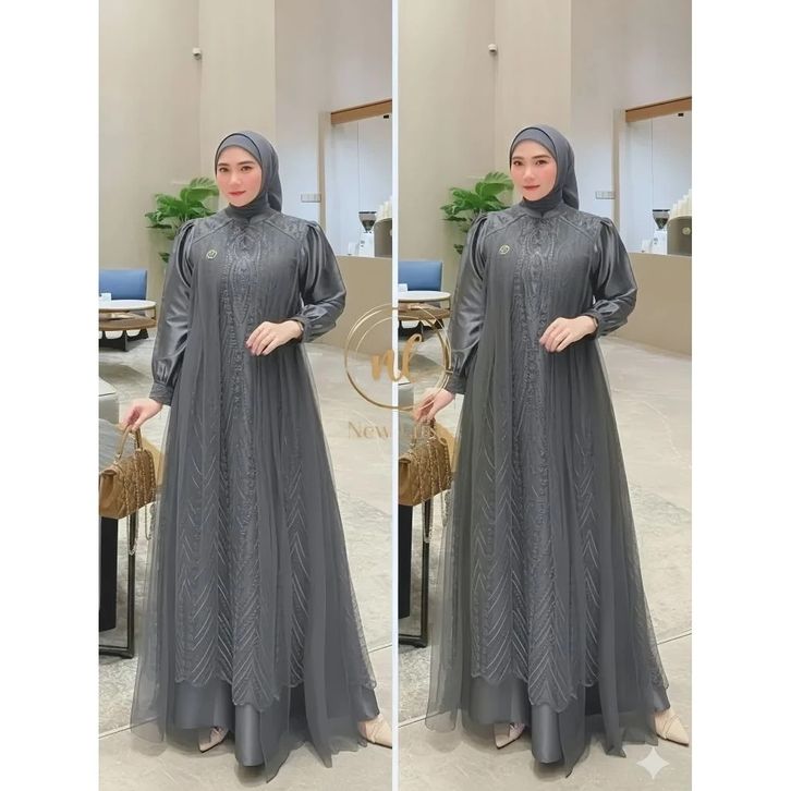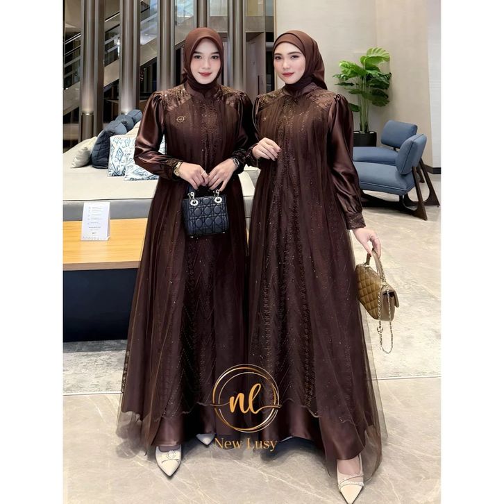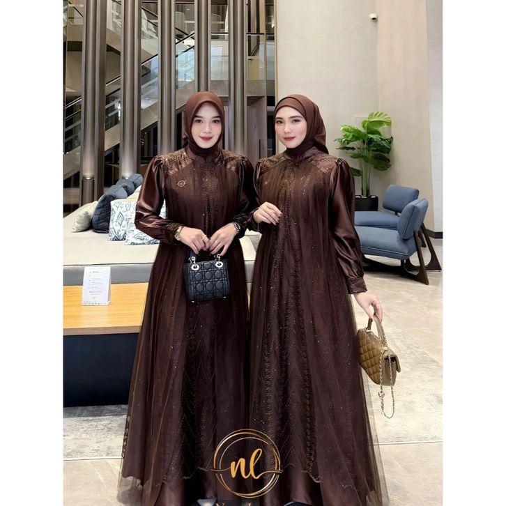 Aulia Dress Brukat Satin Velvet Premium Kombinasi Tille Sparkel Gamis Pesta Kondangan Simple Elegan Gamis Lebaran 2026