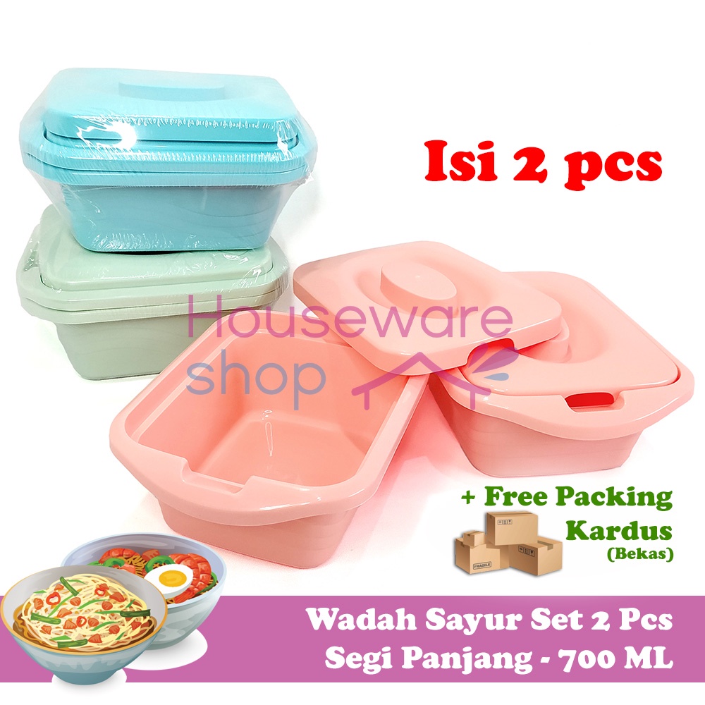 PROMO Tempat Sayur + Tutup / Wadah Saji / Basi Persegi Panjang Lotus Isi 2 Pcs
