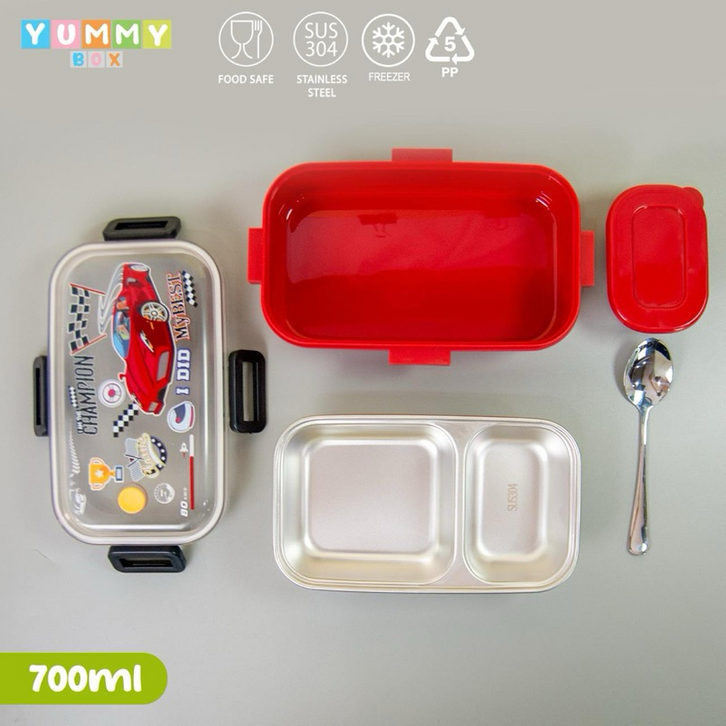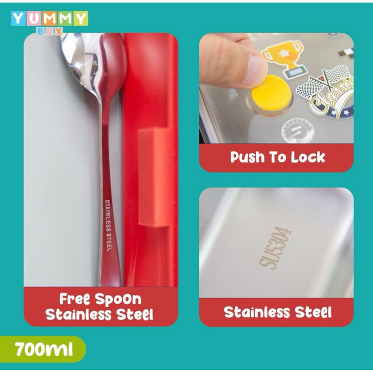 Kotak Bekal Anak Yummy Box Bento Stainless 340 Lunch Box Sekat 2 Volume 700ml BPA FREE