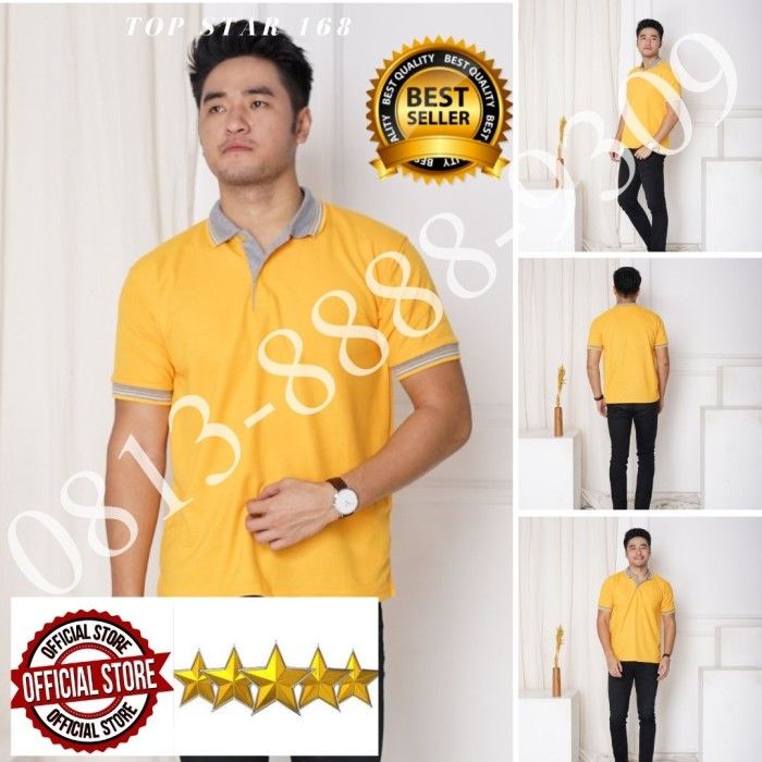 Kaos Polo Shirt kuning kenari kerah abu /kaos kerah pria/baju kerah - Tulis no. warna S