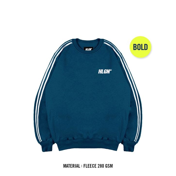 HOOLIGANS SWEATER CREWNECK BOLD LINEA - TEAL - ORIGINAL OFFICIAL STORE ID - PRIA WANITA DEWASA DISTRO BRANDED KEKINIAN T