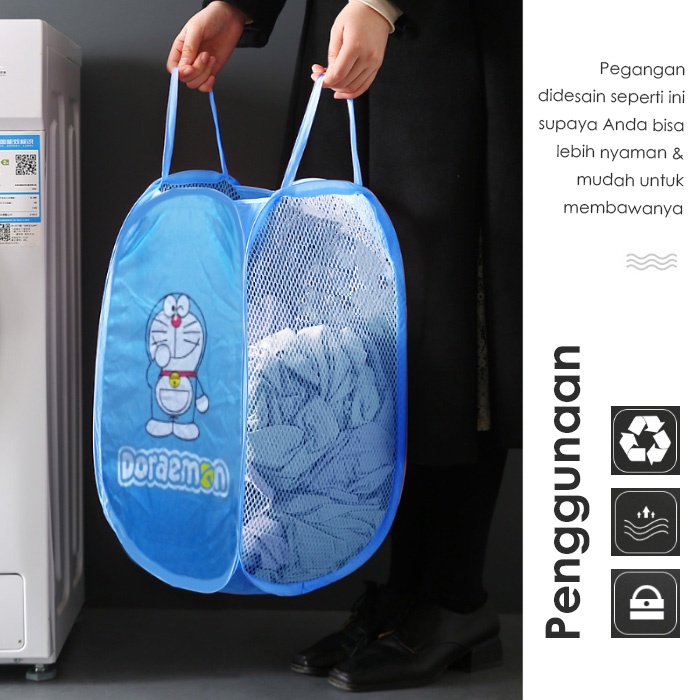Laundry Bag Keranjang Baju Kotor Motif Karakter Ukuran 30x50cm Bahan Kain Jaring Serat Polyester - ZYL1 - Lucky Star