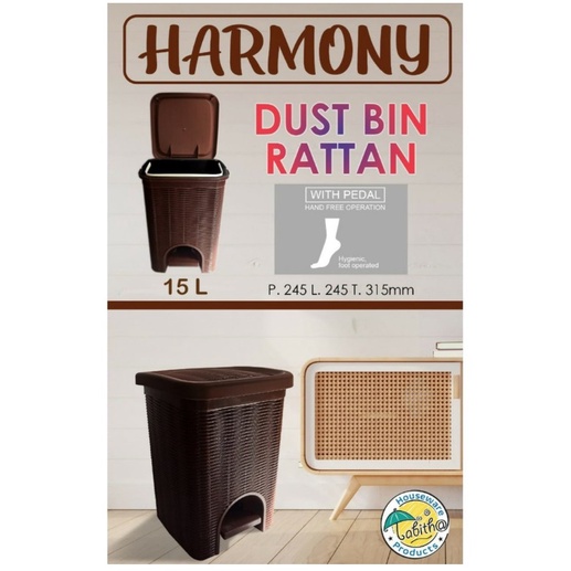Keranjang sampah / tempat sampah rotan / Tong sampah Merek CLUB motif rotan 15 L injak