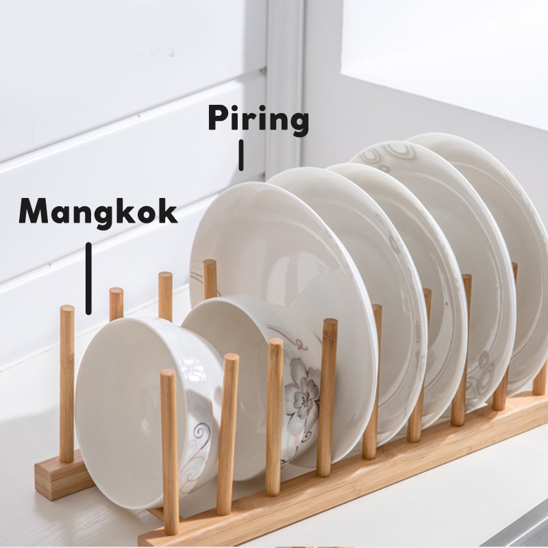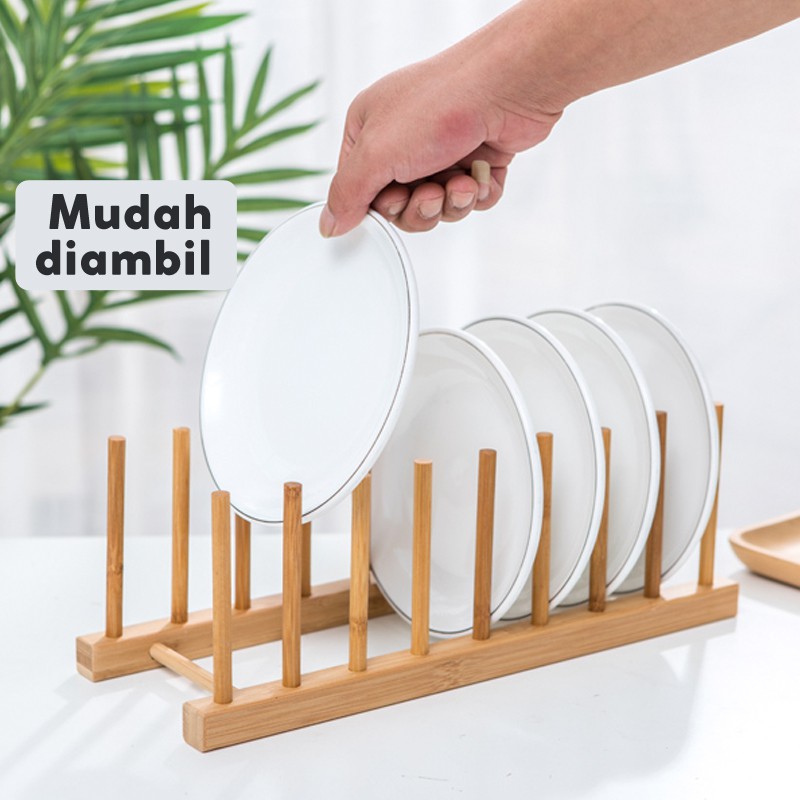 PROMO Rak Piring Kayu Pinus Isi 7 Piring Tempat Mangkok Rak Gelas Pengering Piring Murah HDK202