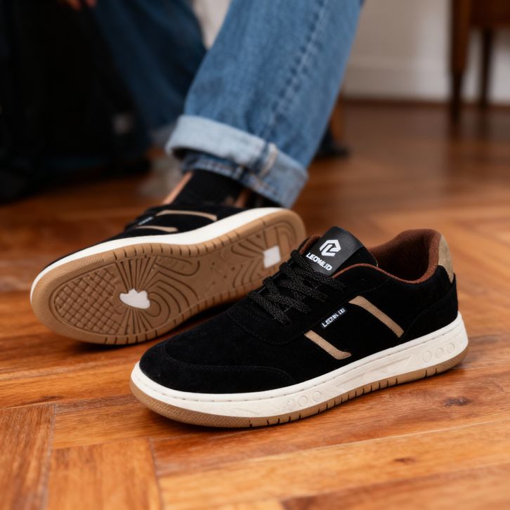 ARCHILES BLACK | Sairashoes - LEON | Sepatu Sneakers Pria Hitam Casual Suede Premium Suede ORIGINAL