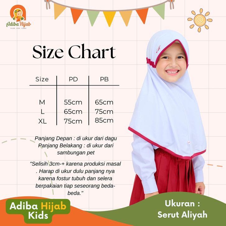 Adiba Hijab - Jilbab Kerudung Anak Sekolah Instan Serut Aliyah TK SD M L