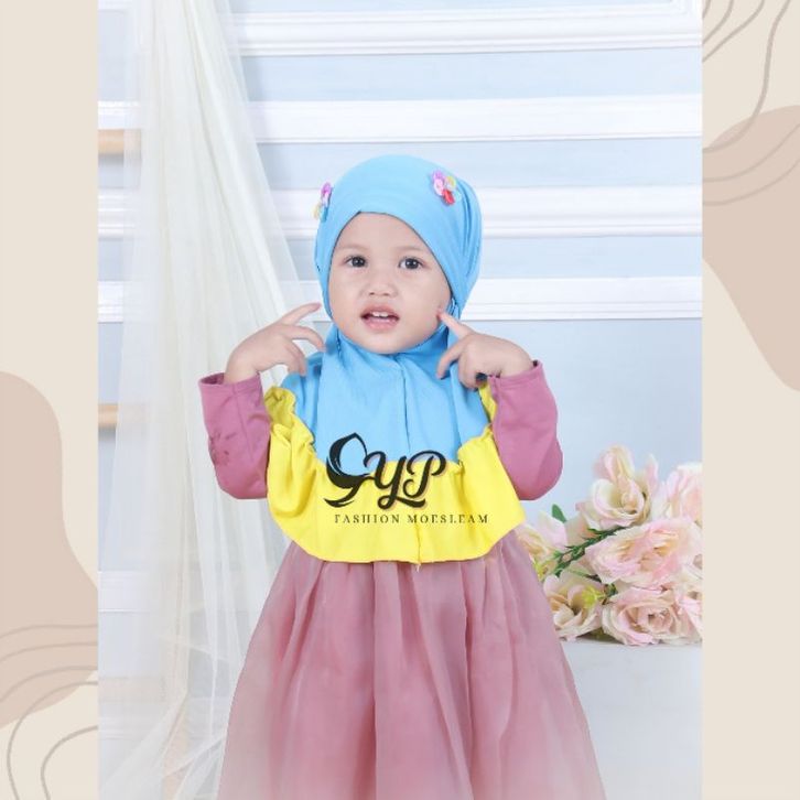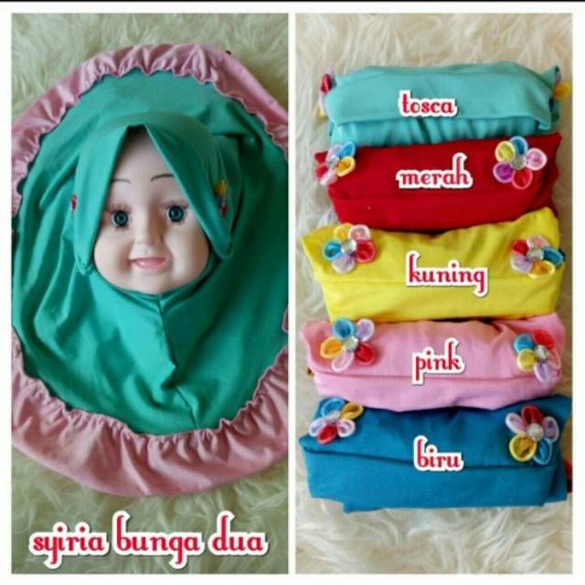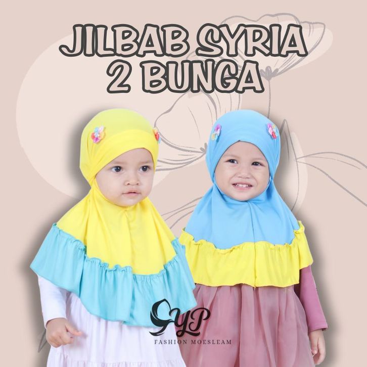 Jilbab Anak Syria 2 Bunga usia 0-3 Tahun Premium