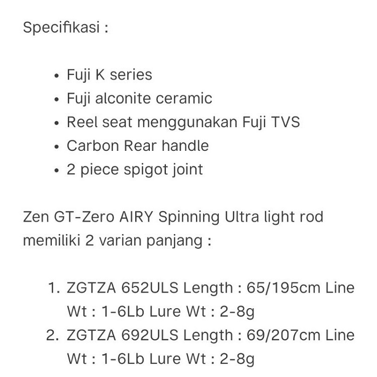 joran ZEN ZAGAN GT ZERO AIRY | 652 | 692 | UL | Daiwa | Maguro | Daido