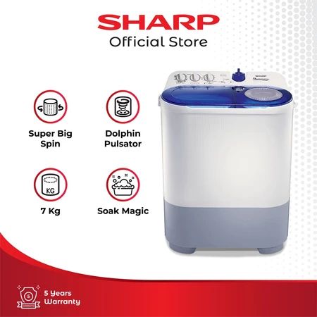 MESIN CUCI SHARP 2 TABUNG KAPASITAS 10 8 7 NEO CRYSTAL COLOUR BODY DURABLE AND CORROTION MURAH TERLARIS