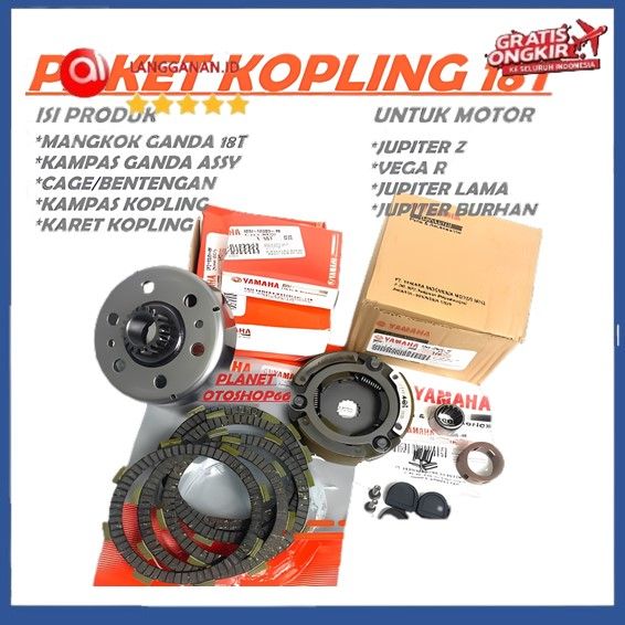 KOPLING PAKET KOMPLIT (18T) YAMAHA 5TP/5TN JUPITER Z VEGA R JUPITER LAMA JUPE BURHAN MANGKOK GANDA 18T + GANDA ASS