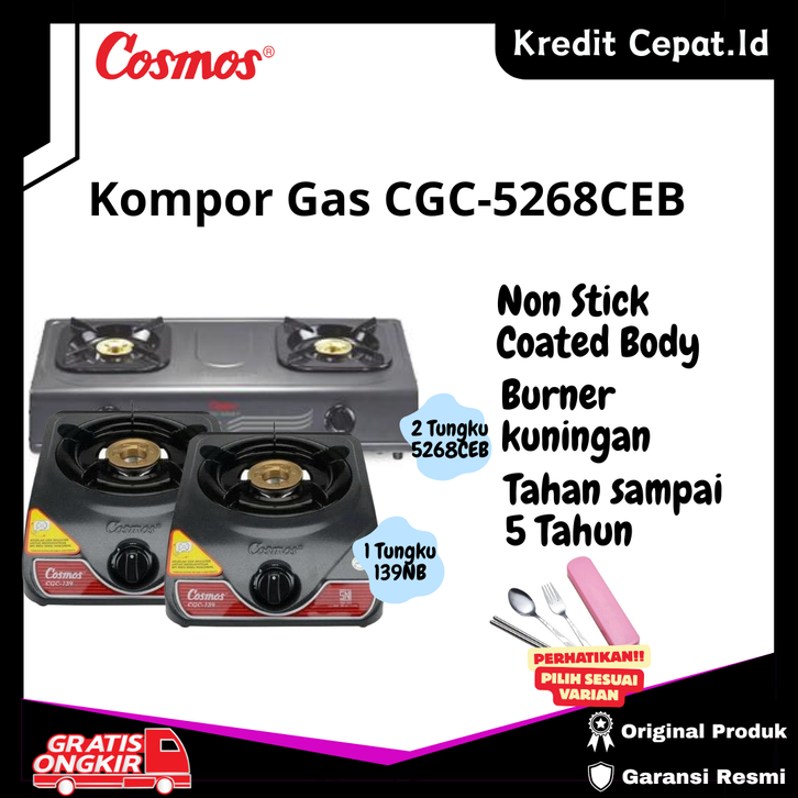 READY Kompor Gas Cosmos 2 Tungku CGC-5268CEB Burner Kuningan, Body Non Stick Coated Garansi Resmi - Kredit Cepat.Id