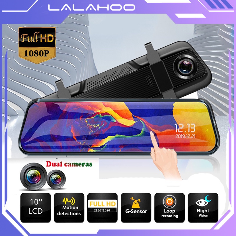 Dash Cam Car DVR Camera 10'' IPS Touch Screen Rearview Mirror Full HD 1080P Night Vision Stream Media Dual Lens Car Came