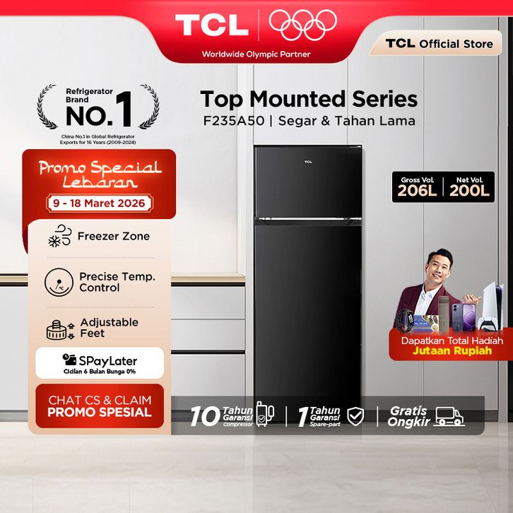 [Mall] Kulkas 2 Pintu TCL 206L Refrigerator Electronic Control Adjustable Feet Low Noise Lemari Es Bergaransi Tanpa DP 0
