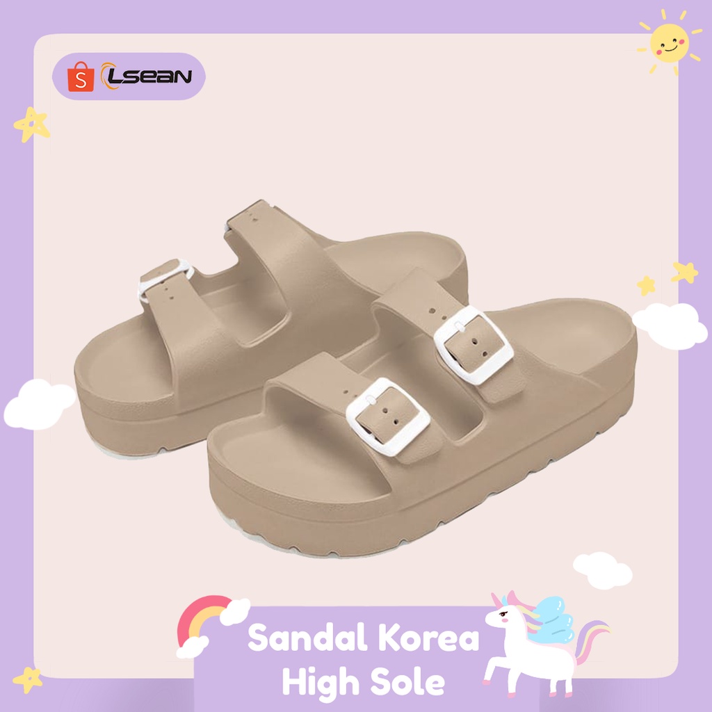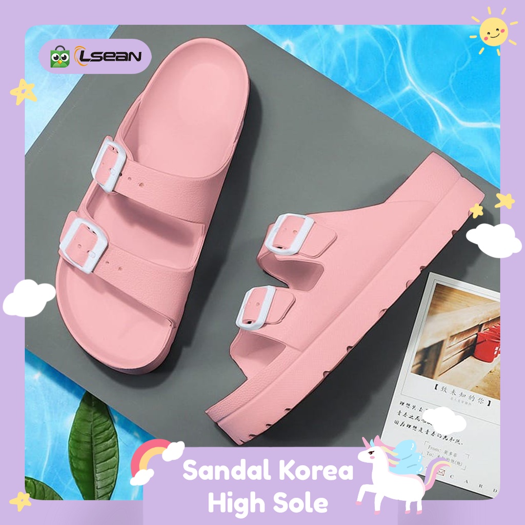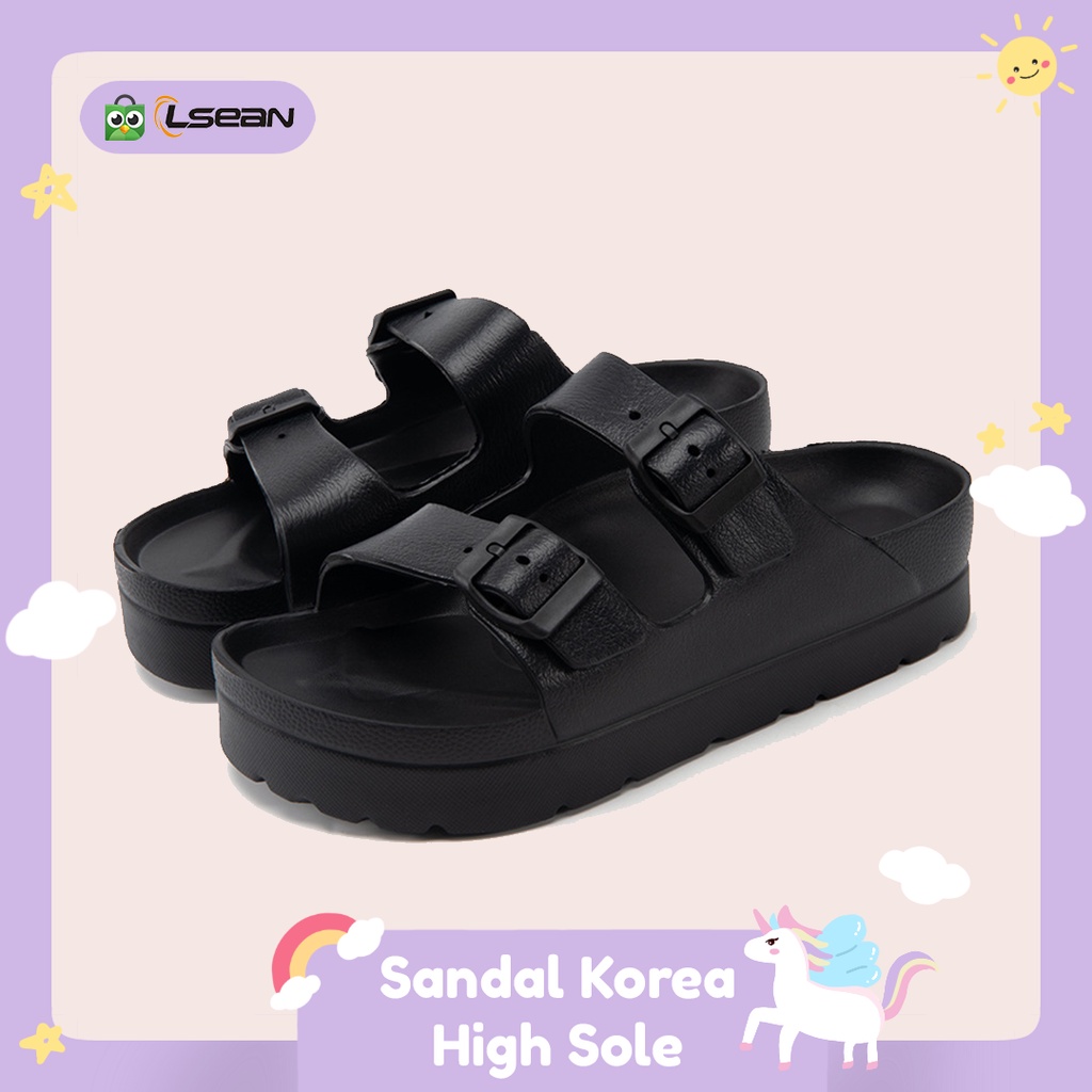 SANDAL WANITA SLIDE PLATFORM SOL TEBAL GESPER GANDA LEMBUT V-03