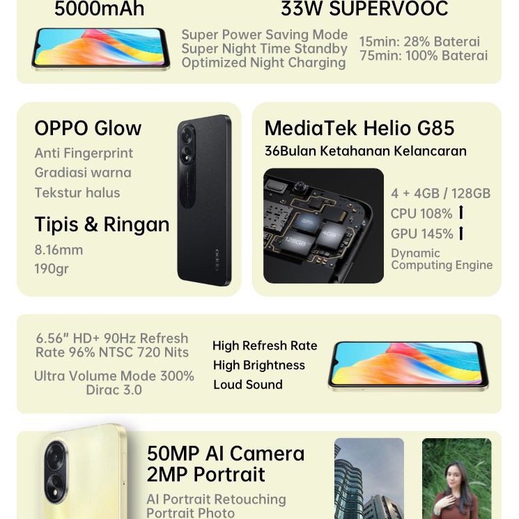 (OPPO STORE) OPPO A38 4/128GB - Garansi Resmi 1 Tahun | OPPO A38 4/128 GB | OPPO A38 Resmi | Oppo A38 6/128GB