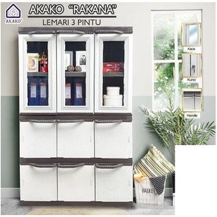 Akako Lemari Buku Plastik Lemari Pakaian File Kantor Cermin Kaca Murah Kuat 3 pintu JUMBO LP3P RAKANA Jumbo Murah Dp 0
