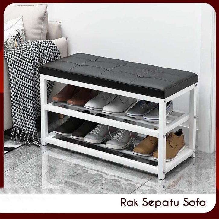 GRATIS ONGKIR - Rak Sepatu Duduk Sofa Besi Tempat Pakai Sandal Ruang Tamu Kokoh Kuat Lemari Sepatu 2 Susun