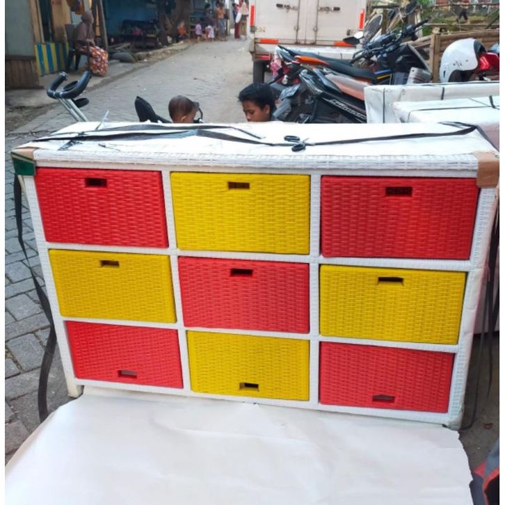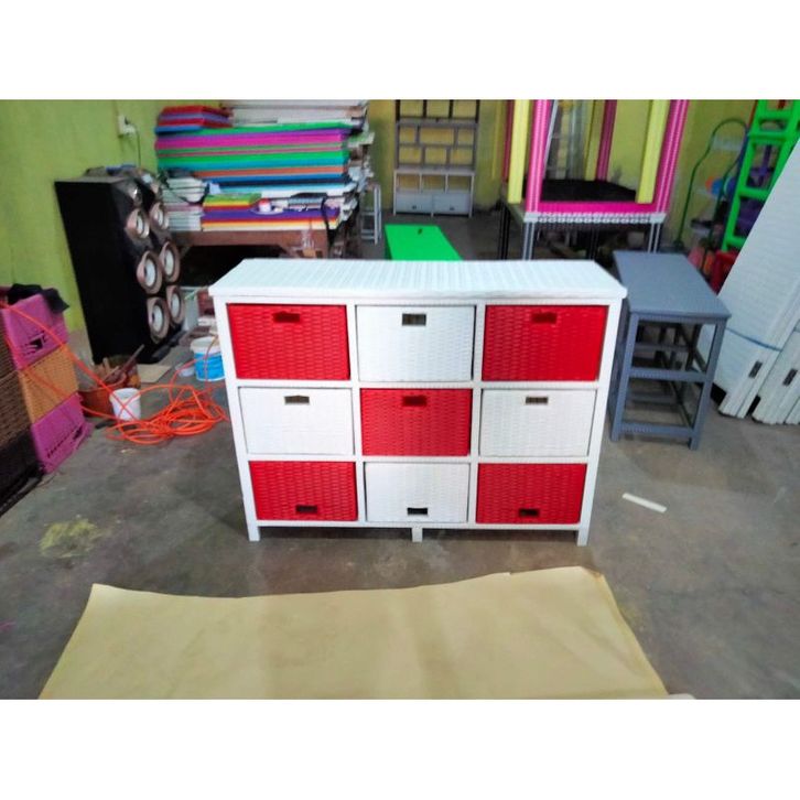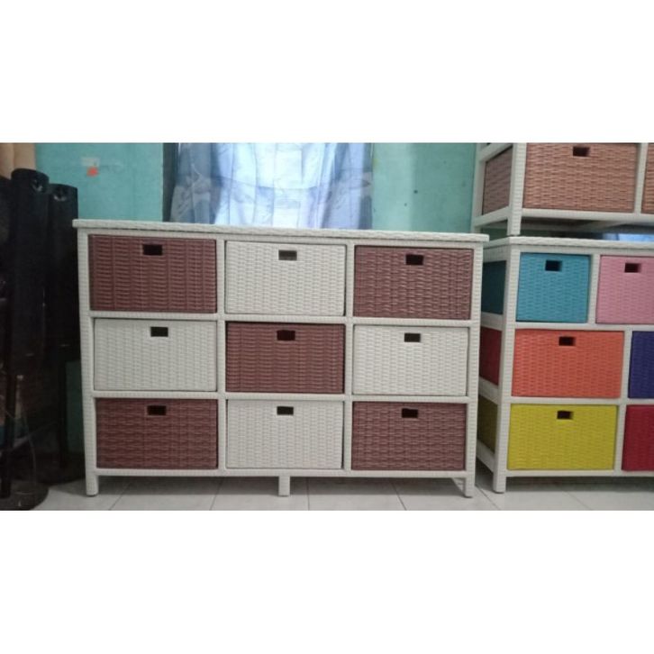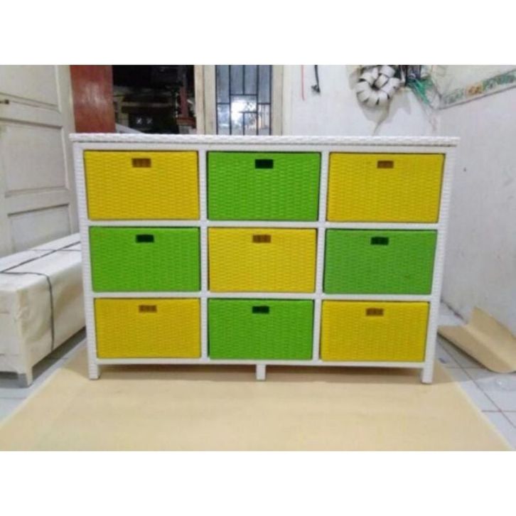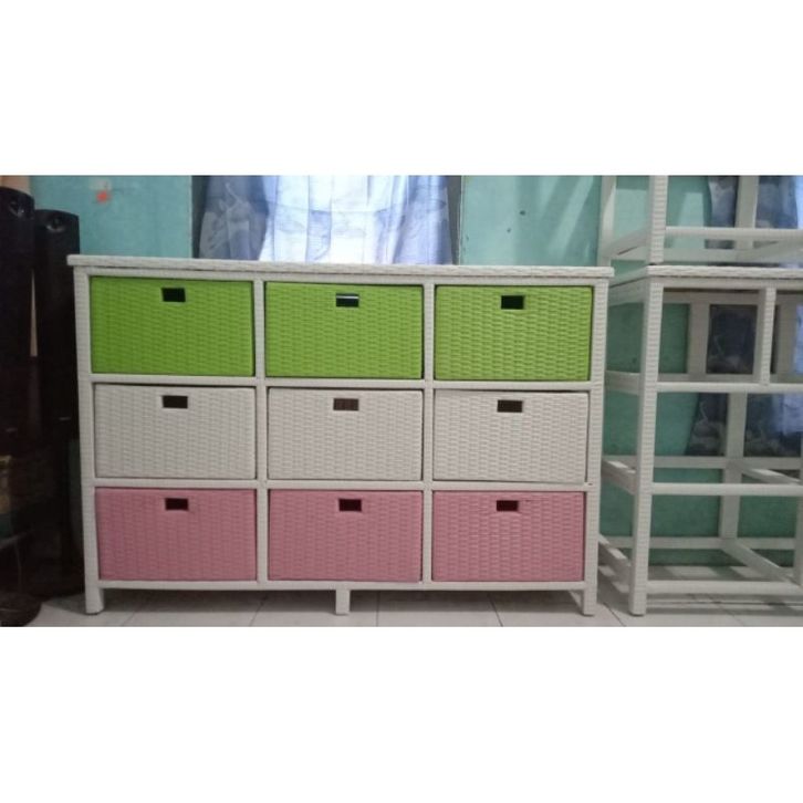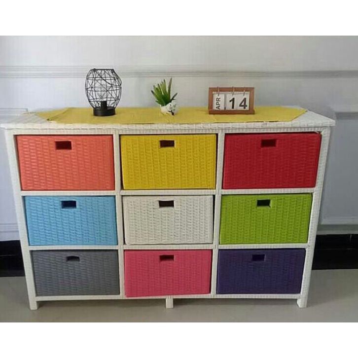 Lemari Rotan Warna Warni 9 Laci Modis Colorfull Jasmin Sintetis3 Susun Pakaian Minimalis Meja TV Modern