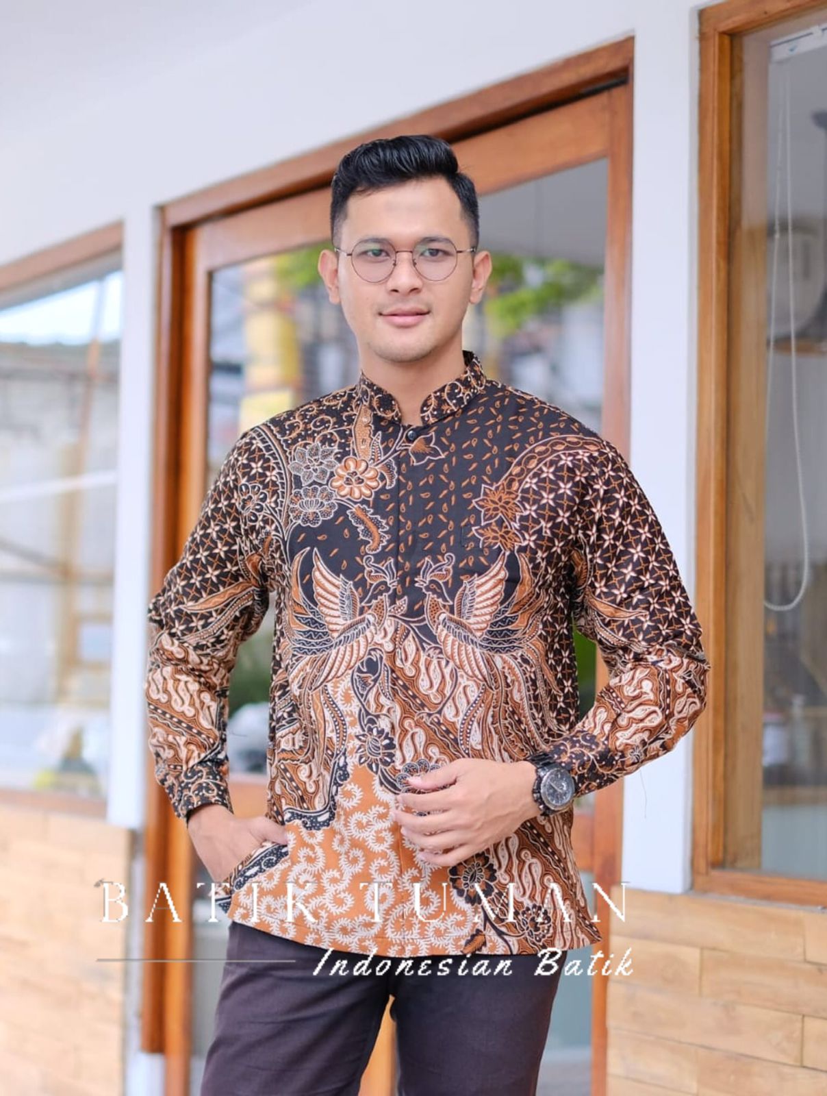 KOKO FAIZ BROWN Baju Muslim Koko Pria Lapis Furing Bahan Katun Halus Motif Batik Pria Lengan Panjang Berkualitas