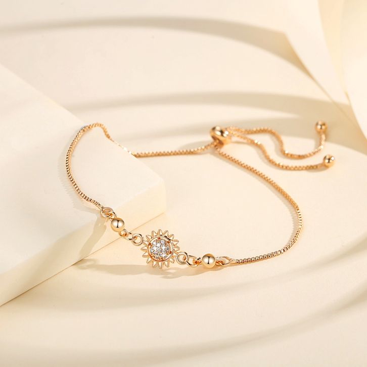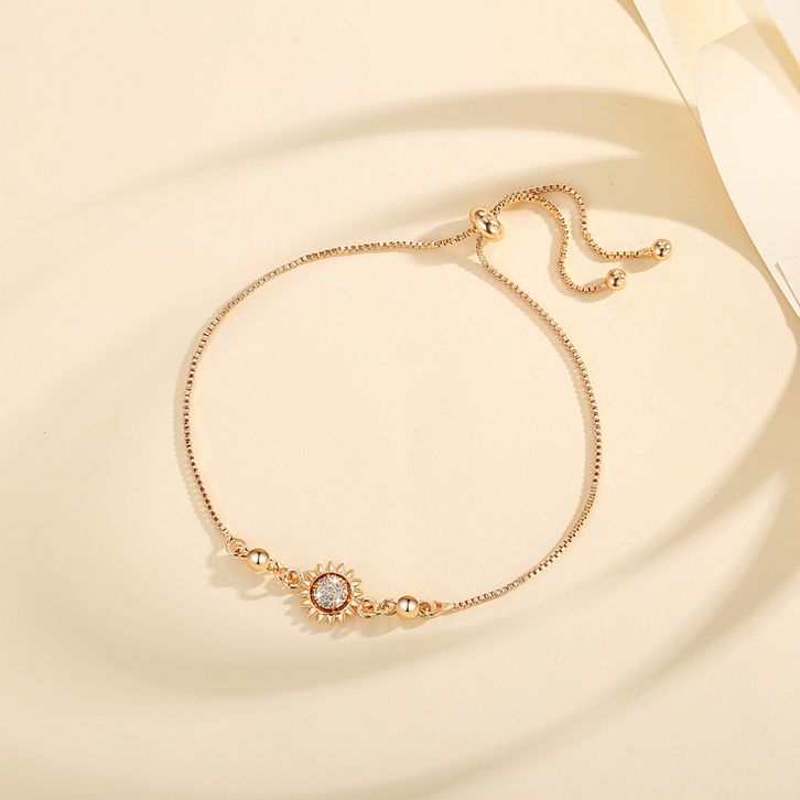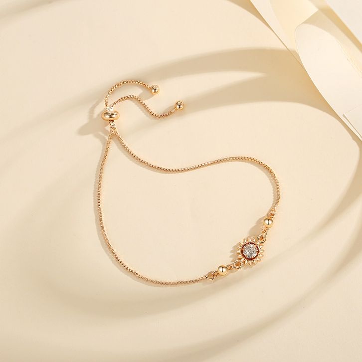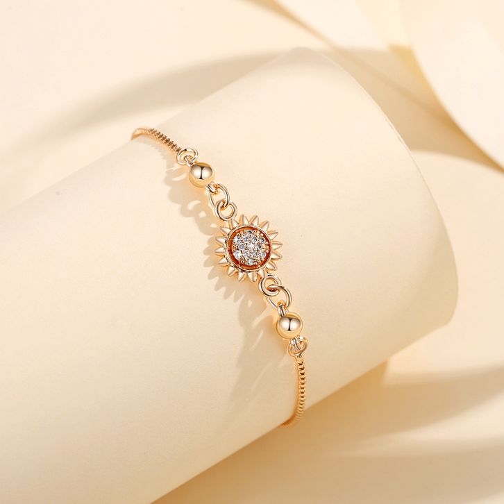 Gelang titanium wanita anti karet Gelang Rantai Sunflower Design Stainless Gelang Wanita Fashion Aksesoris