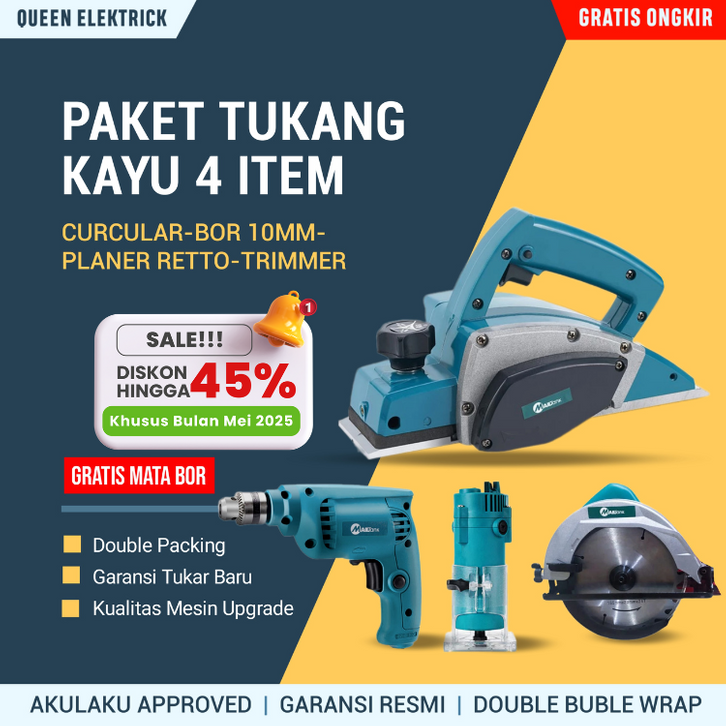 ALAT Tukang Kayu Super Lengkap 4 Item Cirkular Bor 10mm Mailtank Planer Retto Trimmer Mailtank Alat Tukang Mesin kayu