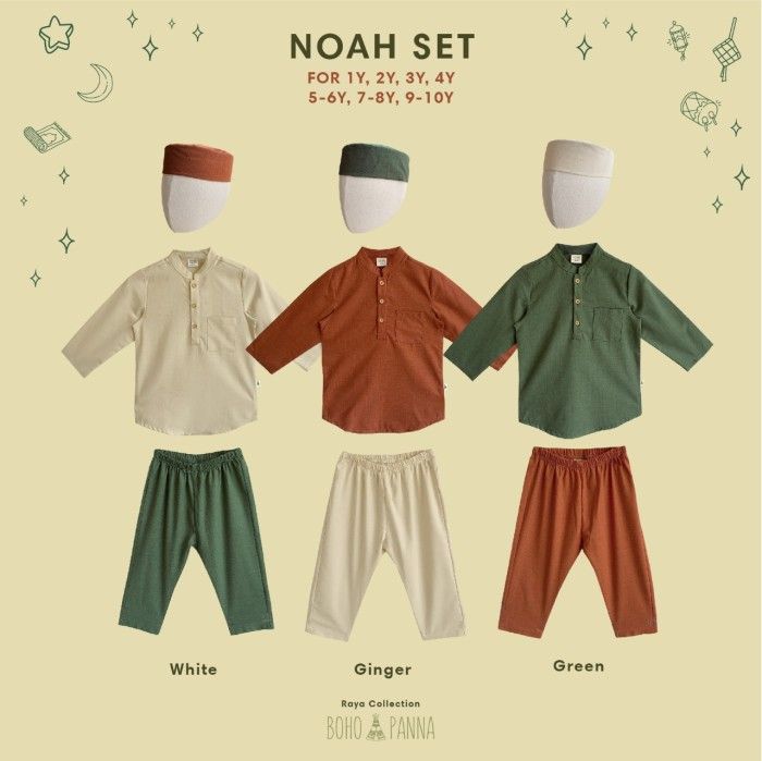 BOHOPANNA Noah Set - Baju Koko Anak - Baju Muslim Anak Laki-laki - GINGER, 4 YEARS