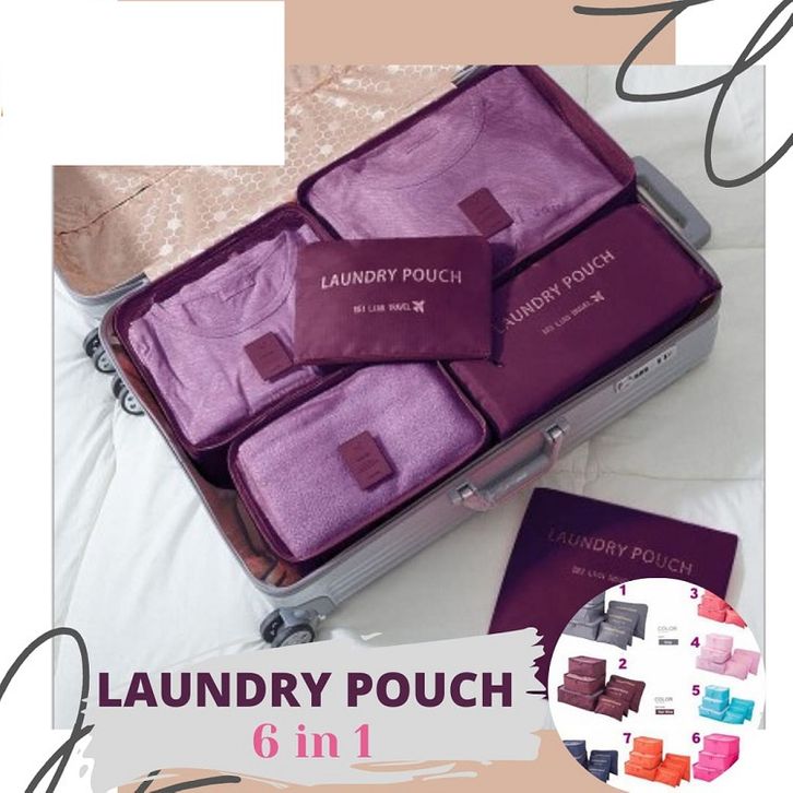 TRAVEL LAUNDRY STORAGE 6 IN 1 BAG SECRET POUCH TRAVELING SET TAS TREVEL ORGANIZER IMPORT MURAH