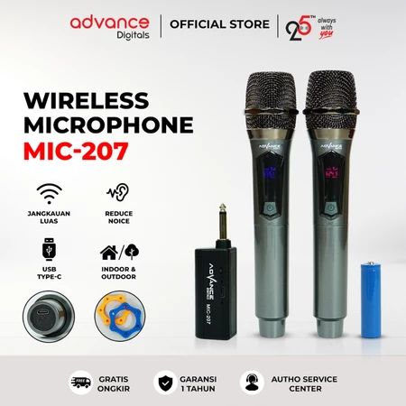MIC WIRELESS ADVANCE 209 MICROPHONE BLUETOOTH MIK MIKROFON KARAOKE TANPA KABEL KAROKE BLUTUT YANG BAGUS TERBAIK