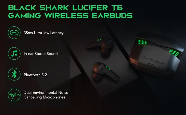 EARPHONE BLUETOOTH BLACK SHARK LUCIFER T6 REALISTIC GAMING EXPERIENCE LATENCY UP TO 35MS MIC PEREDAM BISING (ENC)