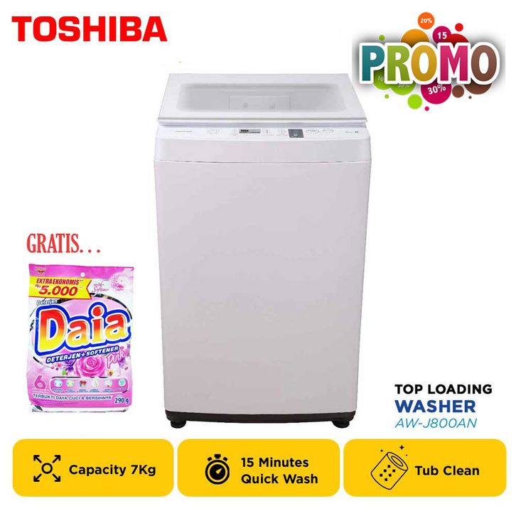 Toshiba Mesin Cuci 1 Tabung TOP LOAD WASHER AW-J800AN ( 7Kg ) Area Jabodetabek