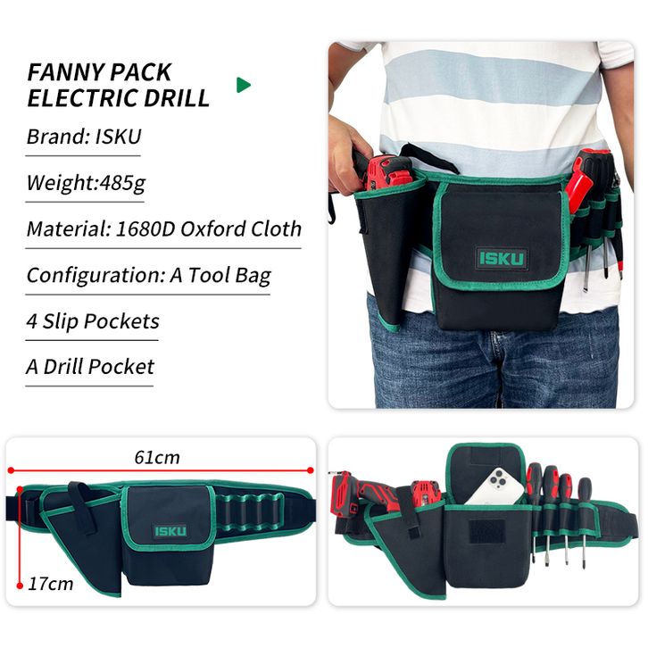 ISKU Electrician Tas Pinggang Mesin Bor Bag/Tas Pinggang Alat Bengkel/Fanny Pack Tas Pinggang Perkakas Tool Bag