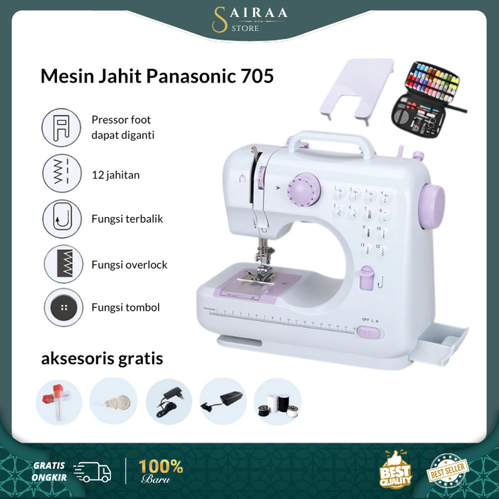 Mesin Jahit Mini Portable LED 705 12 Stitch Pola Pakaian Jahit Tangan